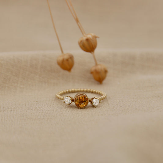 Sunshine in the Middle Ring - Citrine & Diamant – 14k Geelgoud
