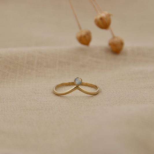 To The Moon And Back Ring - Regenboog Maansteen – 14k Geelgoud
