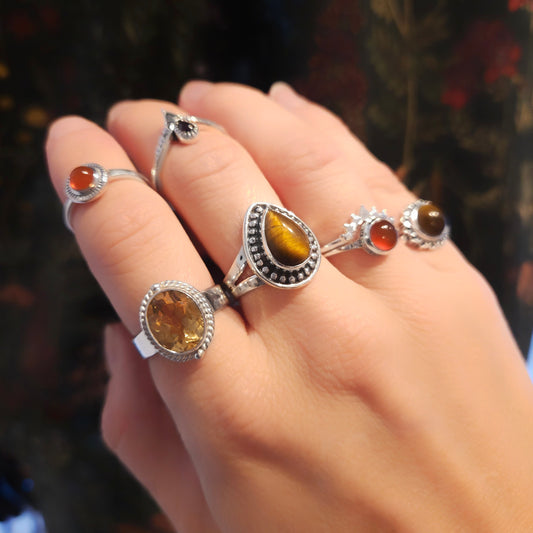 Rode granaat is een levendige edelsteen met een diepe rode kleur, die vaak wordt geassocieerd met passie en vitaliteit. Het staat symbool voor energie, moed en liefde, en wordt gedragen om kracht en doorzettingsvermogen te bevorderen.