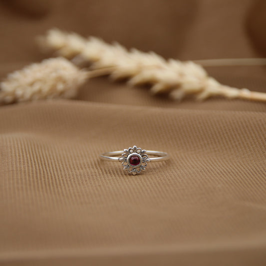 Sterling Silver Luminous Flower Ring – Garnet
