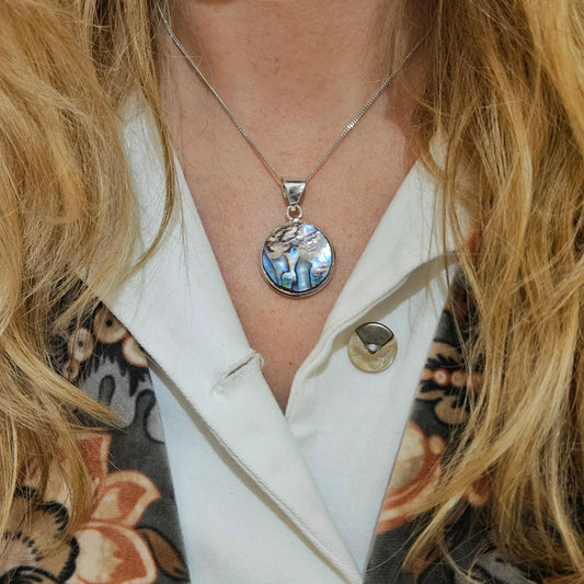 Sterling Silver Round Abelone Pendant