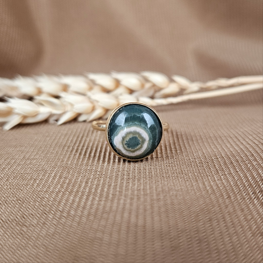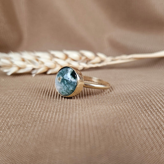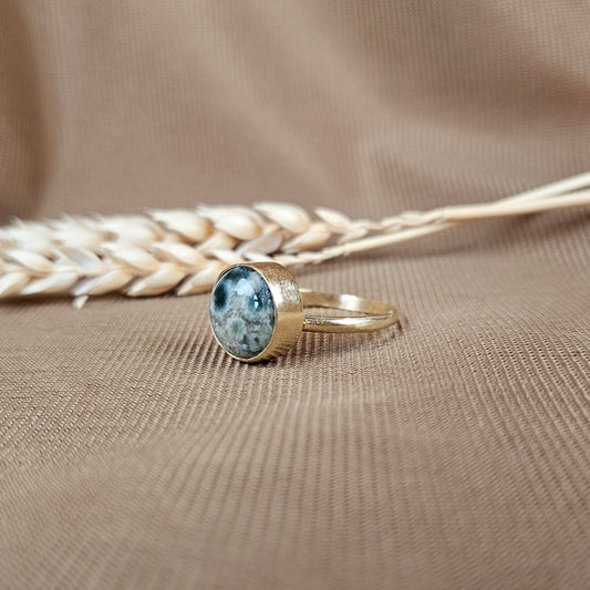14K Gold Vermeil Round Faded Ocean Jasper Ring - One of a Kind - 19 mm