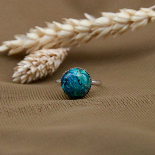 Sterling Silver Round Azurite Ring 17.5 mm - - Limited Edition