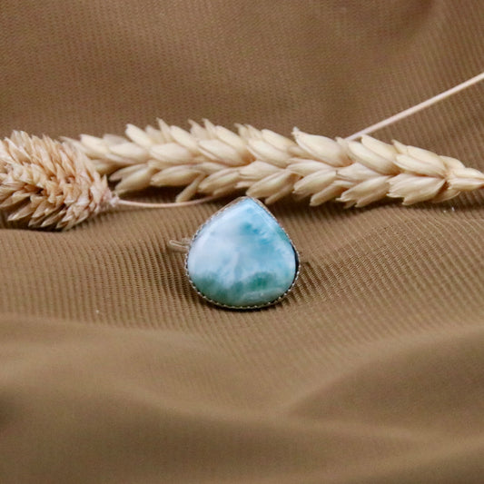 Niet op voorraadSterling Silver Wide Teardrop Larimar Ring 18 mm - Limited Edition