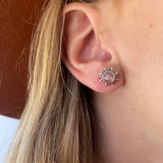 Sterling Silver Fire Of The Sun Studs Rose Quarts