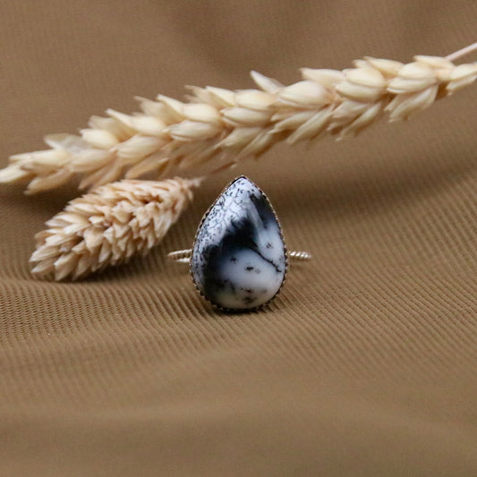 Sterling Silver Teardrop Dendrite Opal Ring 18 mm - - Limited Edition