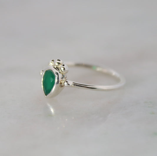Sterling Silver Luminous Flower Ring – Green Onyx