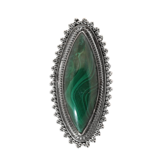 Sterling Silver Big Bohemian Malachite Ring - 17 mm