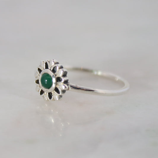 Sterling Silver Luminous Flower Ring – Green Onyx