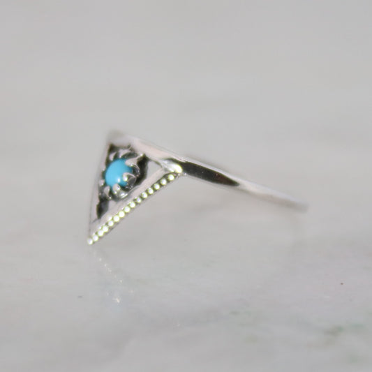 Sterling Silver Beaded Triangle Ring Turquoise