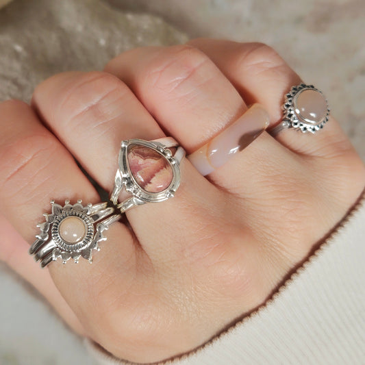 Sterling Silver Bohemian Sugar Ring - Rhodochrosite