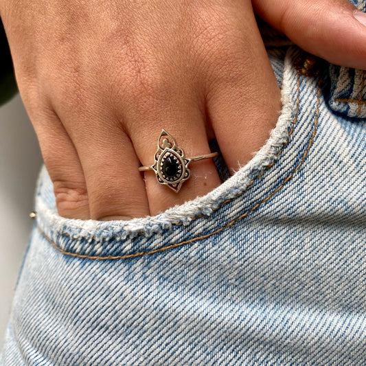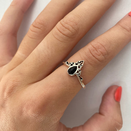 Sterling Silver Delicate Silhouette Ring Black Onyx