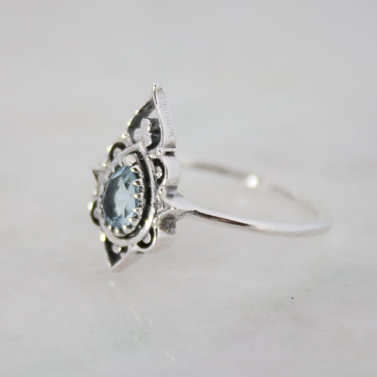 Sterling Silver Delicate Silhouette Ring Blue Topaz