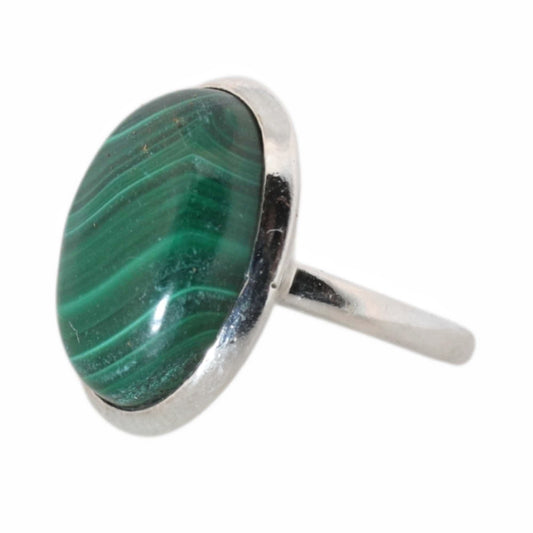 Sterling Silver Big Oval Malachite Ring - 18 mm