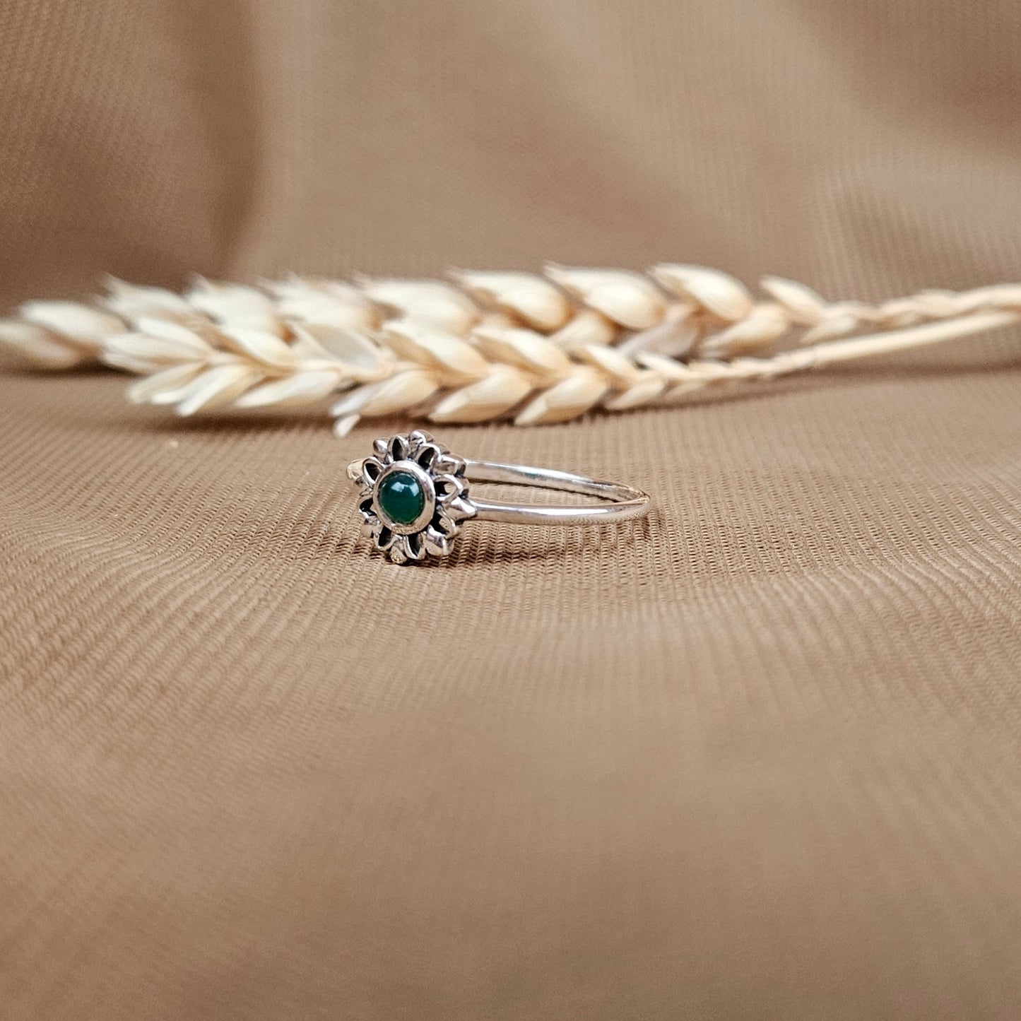 Sterling Silver Luminous Flower Ring – Green Onyx