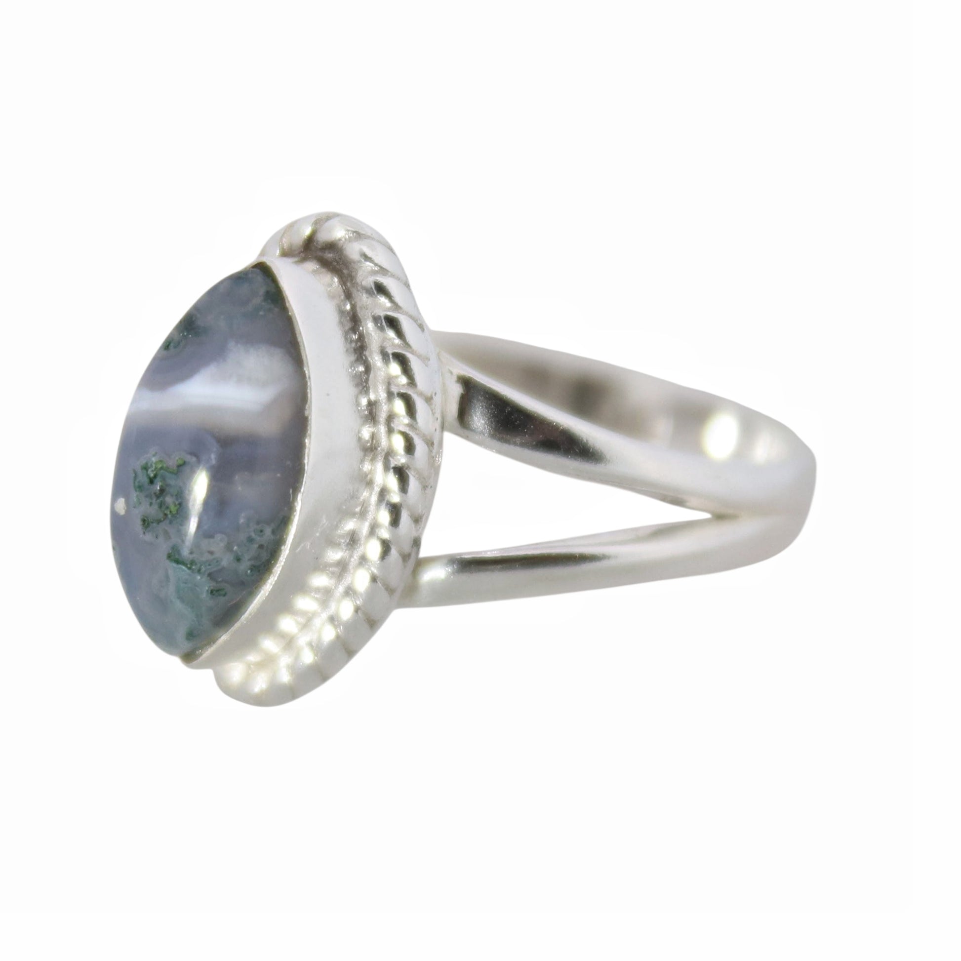 Sterling Silver Marquise Twist Ring - Moss Agate
