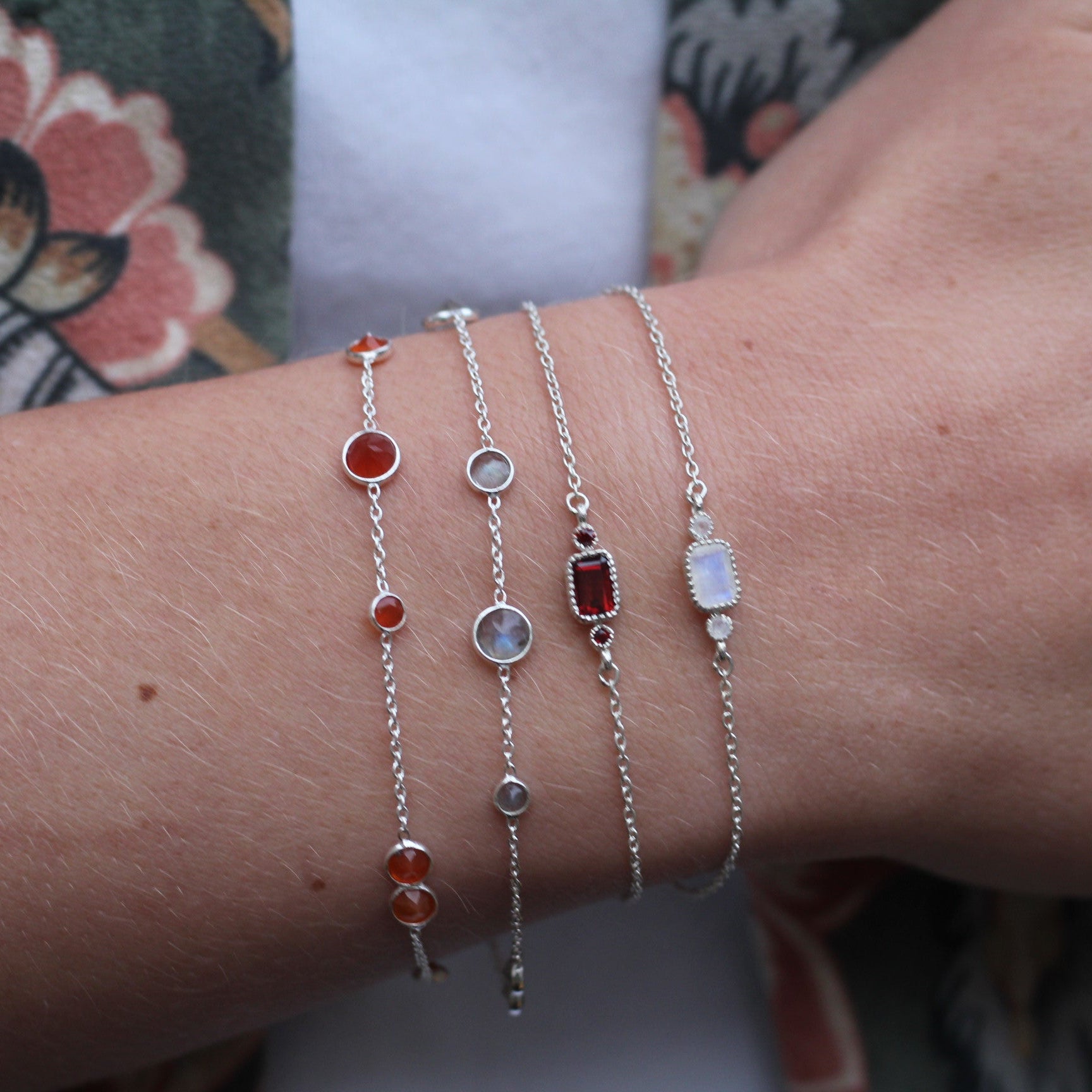Sterling Silver Multiple Stones Carnelian Bracelet