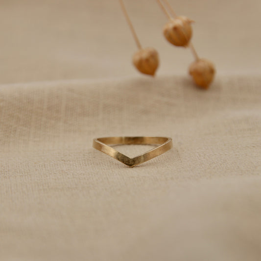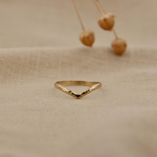 Halfronde Gehamerde Wishbone Ring - 2.0 x 1.0 mm - 14k Geelgoud