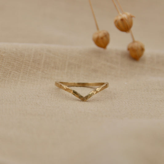 Vierkante Gehamerde Wishbone Ring - 1.5 mm - 14k Geelgoud