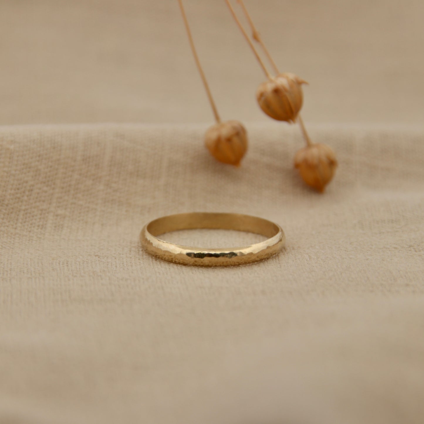 Halfronde gehamerde herenring - 3.0 x 1.0 mm – 14K Geelgoud