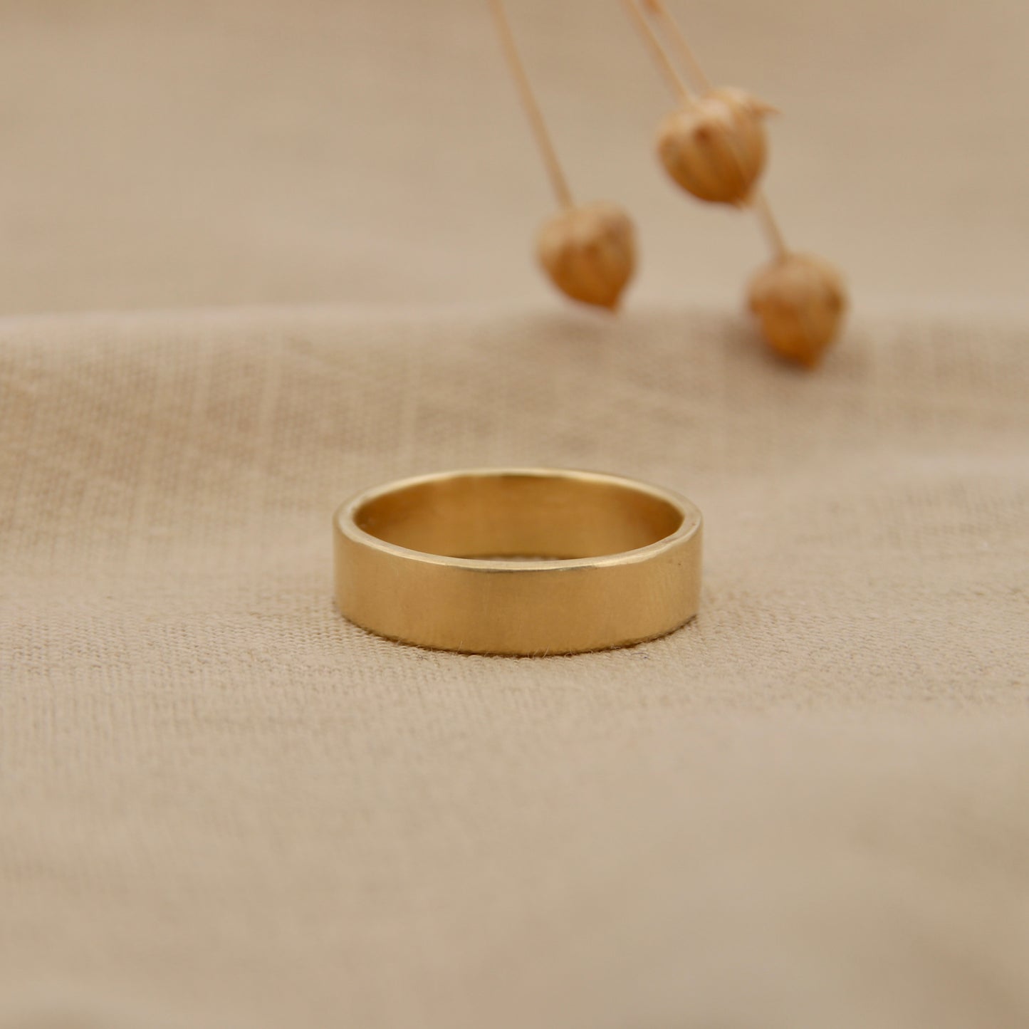 Deze herenring wordt in het atelier van Happy Hippies op maat gemaakt. De ring is rechthoekig van vorm en heeft een breedte van 6.0 mm en een dikte van 1.5 mm. De ring kan glanzend of mat afgewerkt of met een satijnfinish die daar tussenin zit.