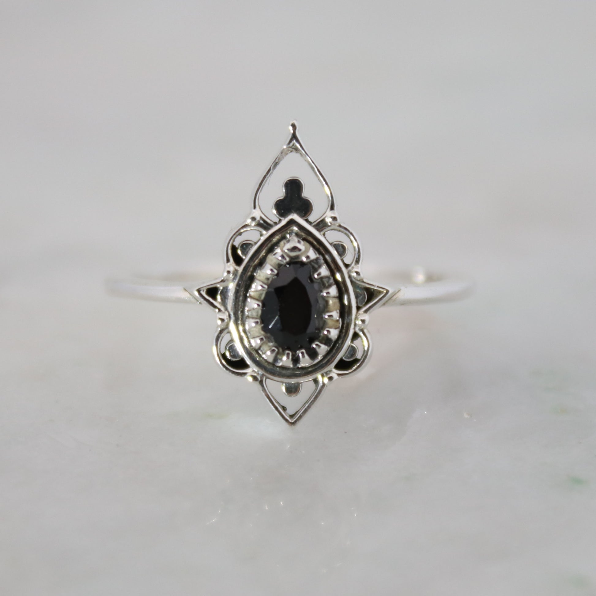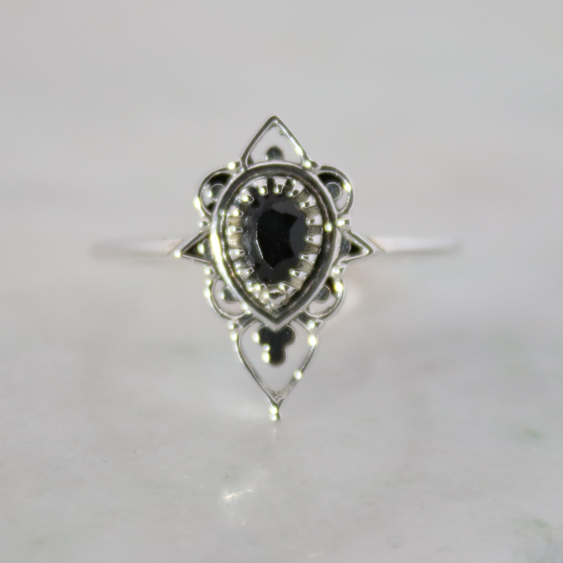 Sterling Silver Delicate Silhouette Ring – Black Onyx