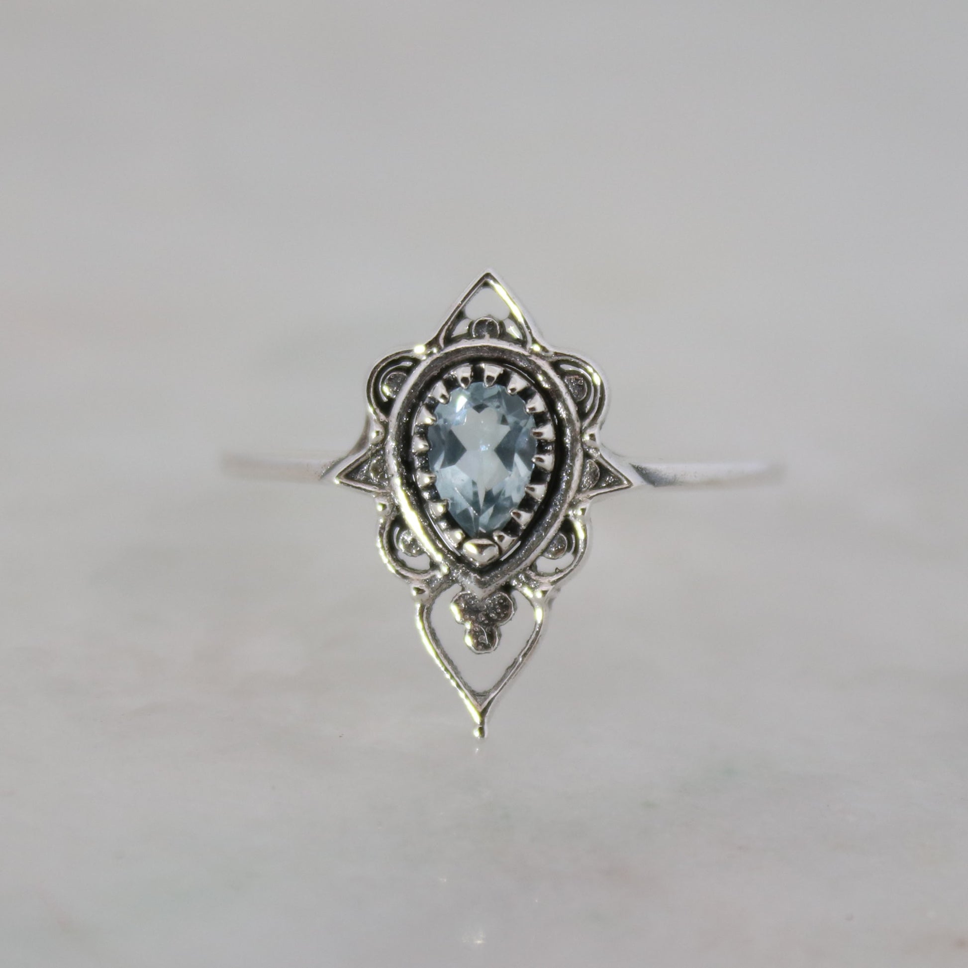 Sterling Silver Delicate Silhouette Ring – Blue Topaz