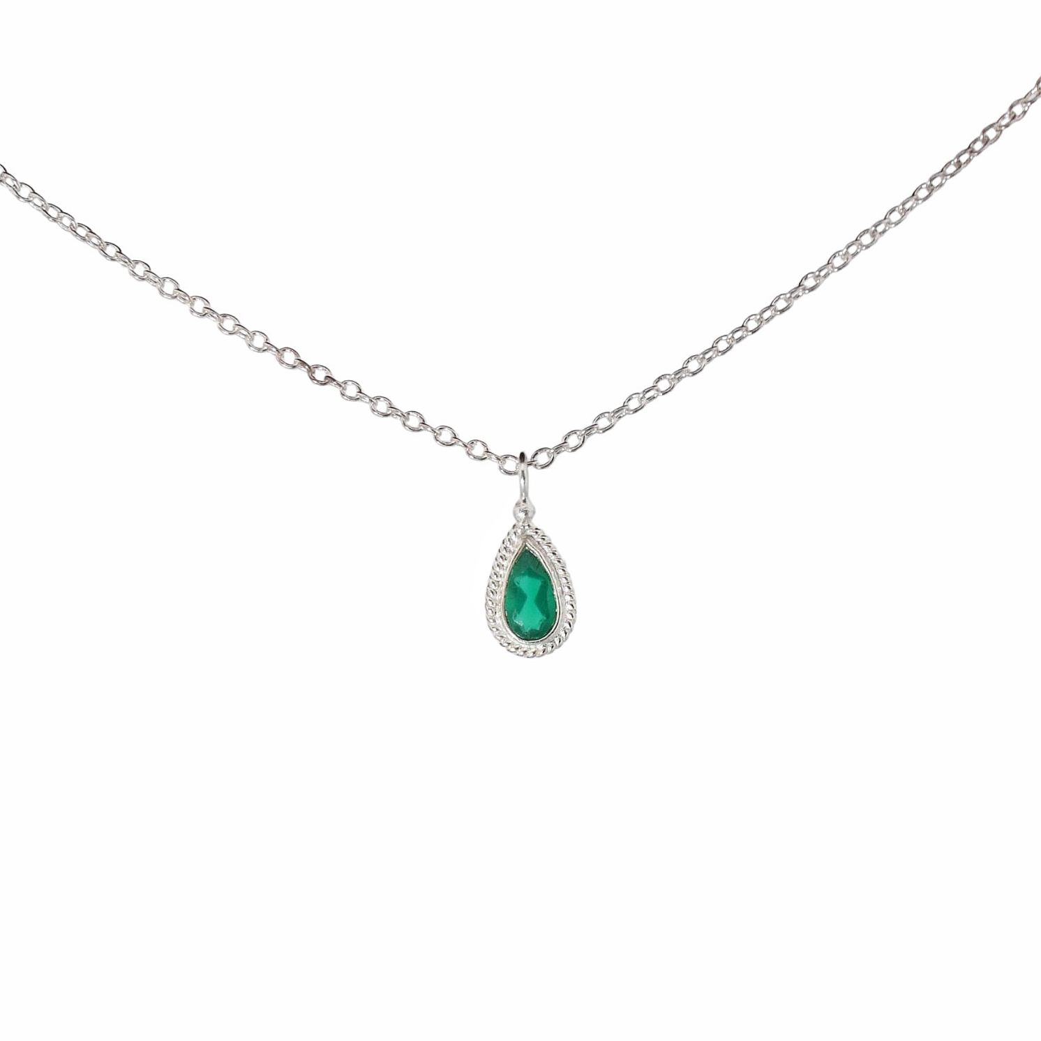 Sterling Silver Mini Teardrop Green Onyx Necklace