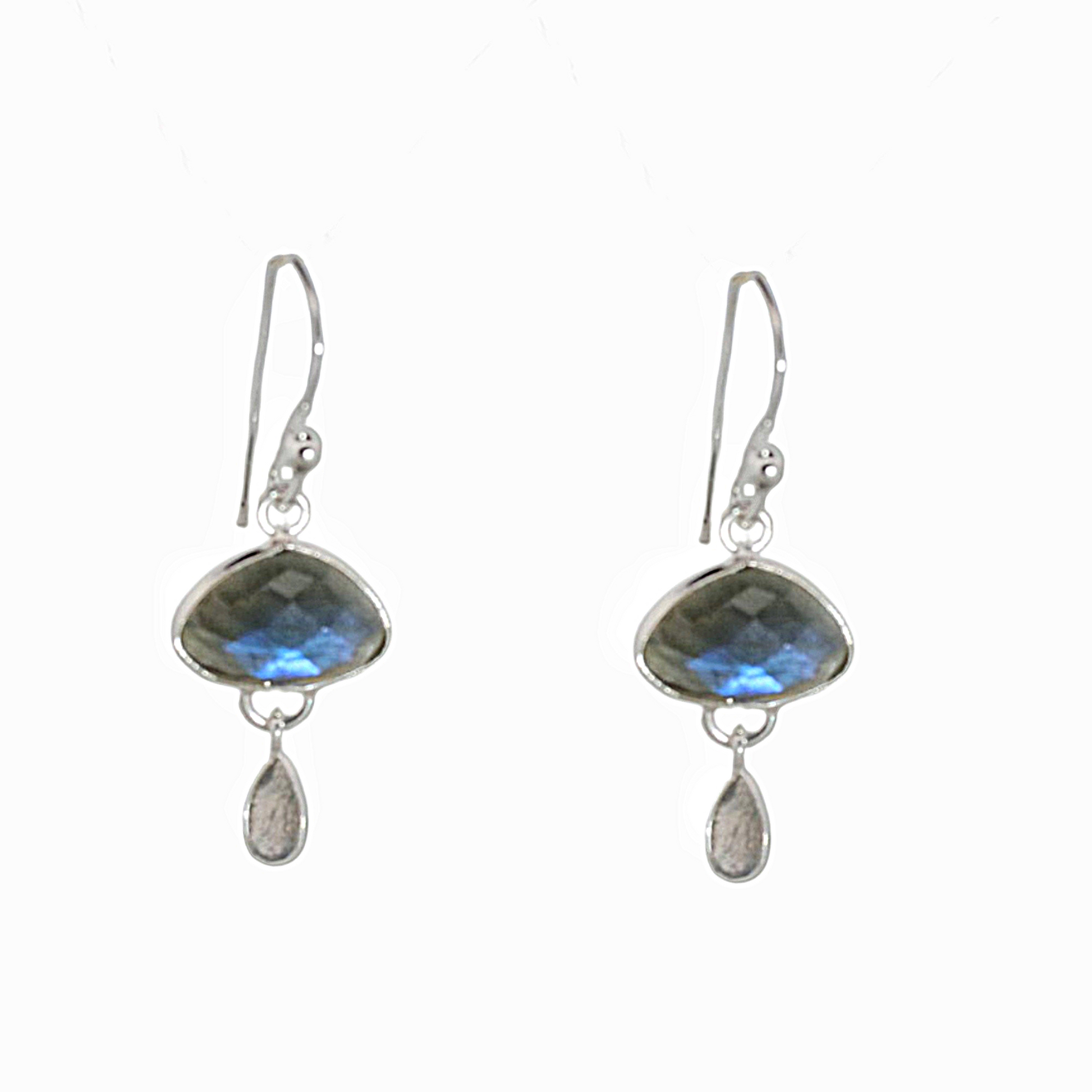 Deze oorbellen met grijszwarte stenen die blauw opkleuren hebben een rustige en neutrale uitstraling die makkelijk bij elke outfit past.